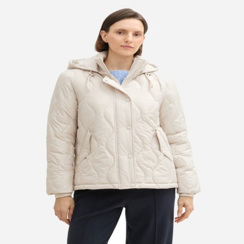 Куртка демісезонна коротка з капюшоном жіноча Tom Tailor 1041487-12365 L Бежева (4068127227515)